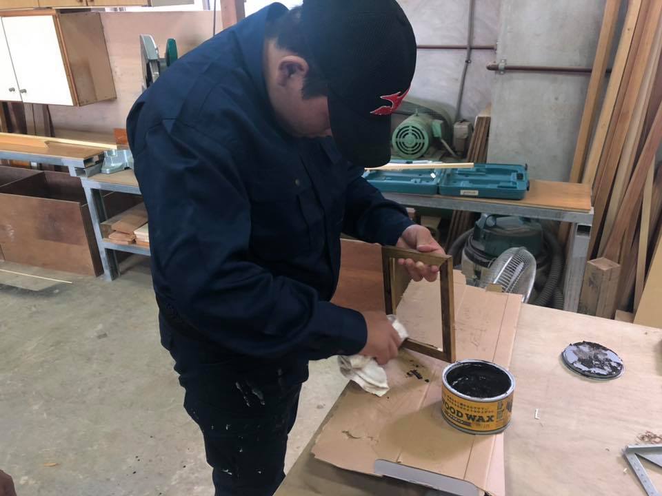 最終日の朝礼では手話でしっかりコメントもして頂き、弊社木工所にてフォトフレームも作ってもらいました。