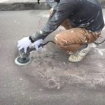 また以前の防水の古い塗膜を取るためサンダーで表面を削り、その後防水工事を行いました。