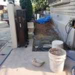 既存の土間を斫った際、曲がり角になる所に施主様が大切に植えられていた黒木があった為、施主様と打ち合わせを行いお庭に移動しました。